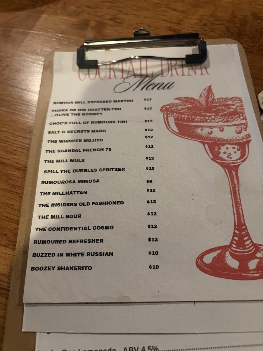 The menu at The Rumour Mill features a diverse selection of hot beverages, bakery items, and specialty espresso drinks. Visitors can choose from a variety of hot coffees and teas, including options such as lattes, macchiatos, cappuccinos, Americanos, and brewed coffee and tea. Specialty hot drinks also include options like hot chocolate, matcha latte, chai latte, and white mocha.